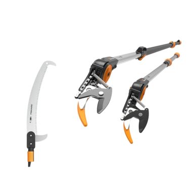 Τα κλαδευτήρια κορυφής της Fiskars® επιτρέπουν να φτάσετε στην κορυφή των δέντρων χωρίς σκάλα και χαμηλά στο επίπεδο του εδάφους των πυκνών θάμνων χωρίς να γονατίσετε. Προσφέρουν ξεχωριστά πλεονεκτήματα σε κάθε κηπουρό που προτιμά να εργάζεται σταθερά με τα πόδια του στο έδαφος. Ο ελαφρύς, αλλά ισχυρός μηχανισμός κοπής της ρυθμιζόμενης κεφαλής τους βοηθά στη διασφάλιση γρήγορης, εύκολης και ασφαλούς κοπής και κλαδέματος δέντρων.